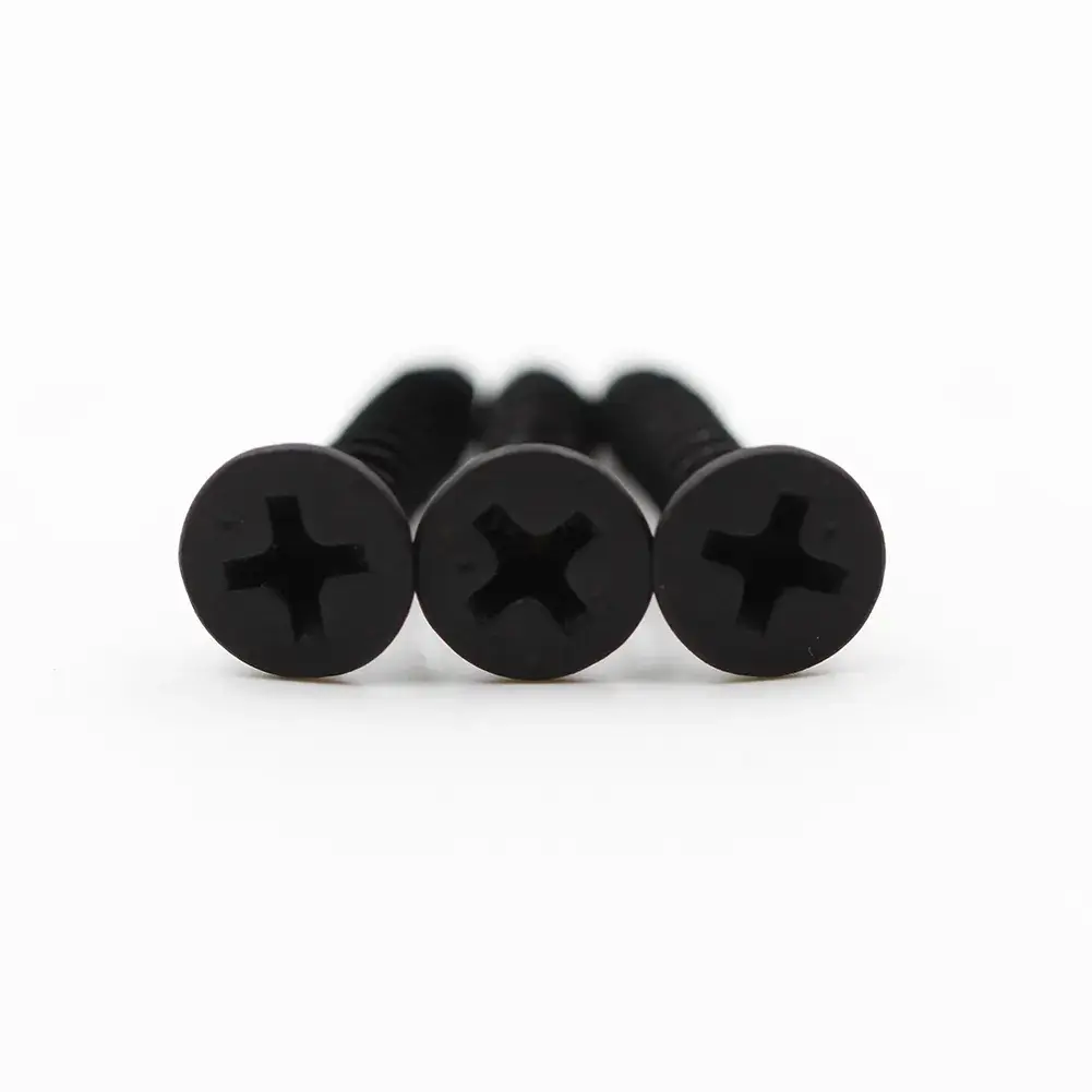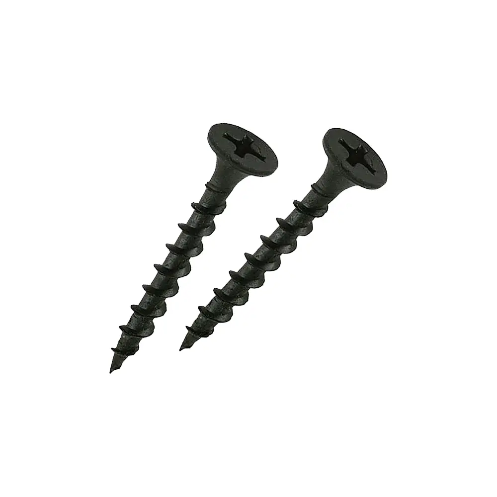 Phosphate screws for wood and plasterboard, durability, convenience, corrosion resistance. Screws designed for fixing plasterboard to wooden substrate inside buildings. Made of surface-hardened low-carbon steel, phosphated electroplated. They proved themselves during the installation of profiles for stretch ceilings.