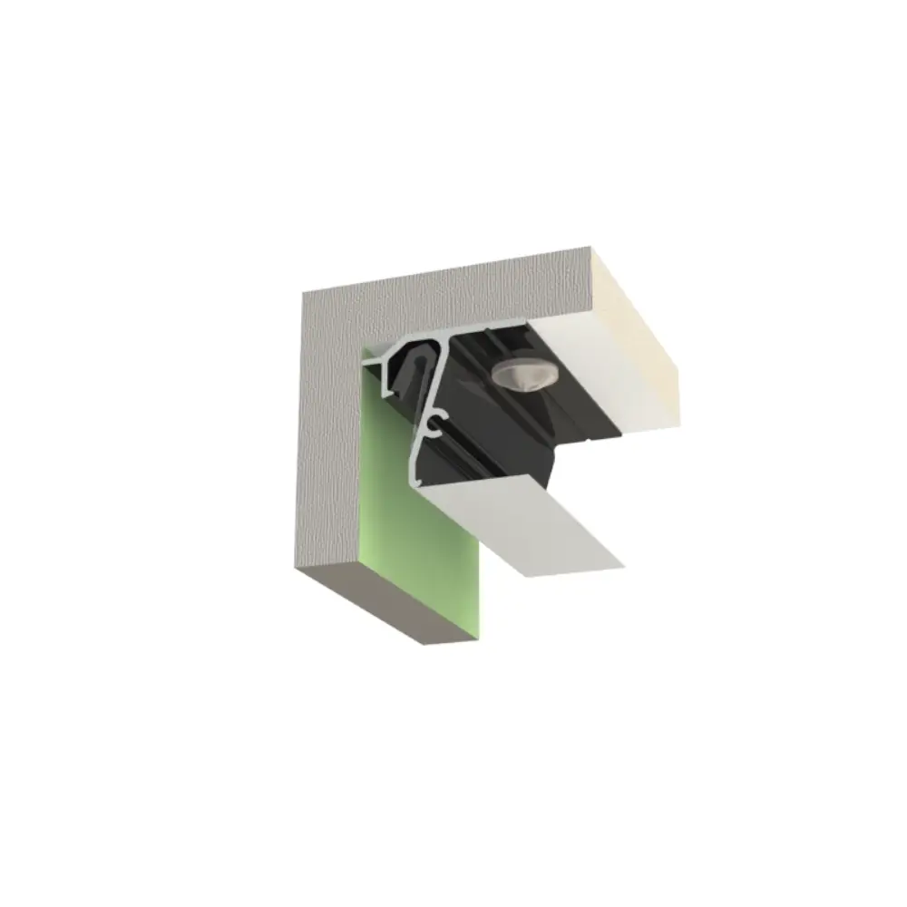The “DELTA SU” aluminum profile by 2K-Trade is designed specifically for ceiling-mounted stretch ceiling installations. Its compact height is ideal for rooms with limited ceiling space, allowing a neat, shadow-gap finish without the use of masking inserts.