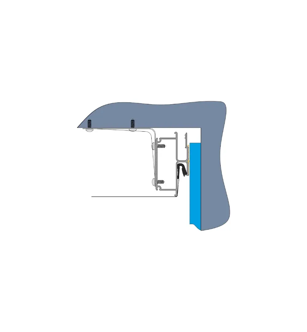Secondly, when the profile is flipped, it can be used with a dedicated PVC gasket—exactly like in traditional COMFORT profiles. In this configuration, the mounting space is concealed, creating a clean, seamless ceiling-to-wall connection.