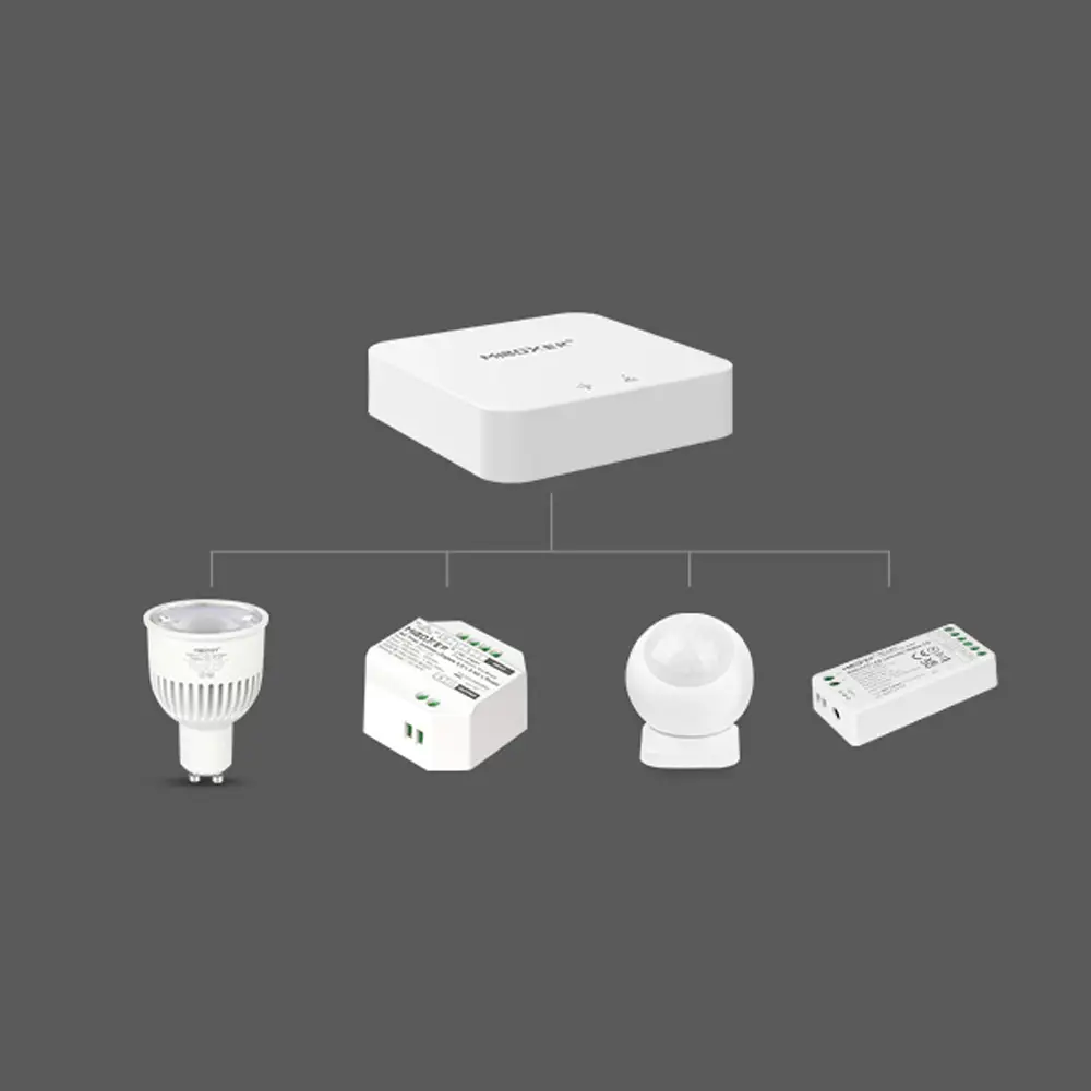 MI-LIGHT ZB-Box3 is a compact gateway that combines two wireless communication technologies: Zigbee 3.0 and Bluetooth Mesh. It enables seamless control of compatible devices via the Tuya Smart app, integrating them into a smart home ecosystem.