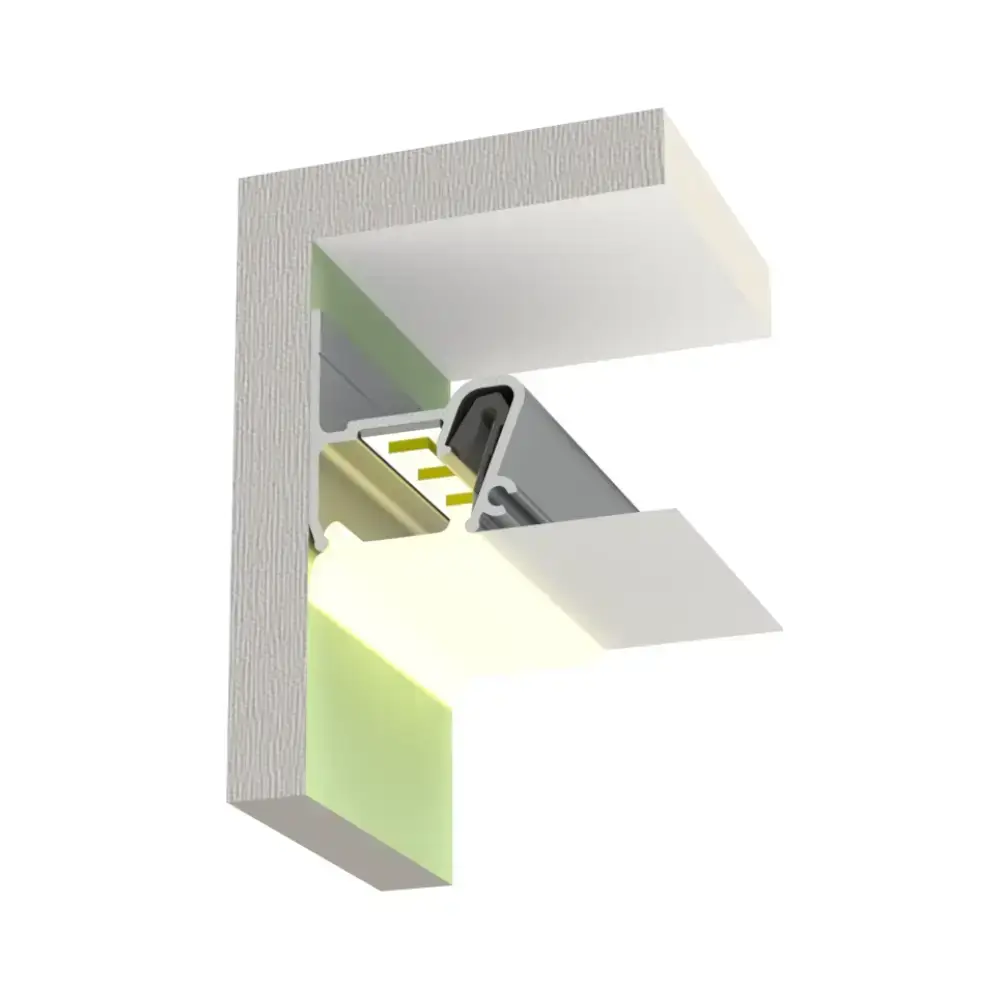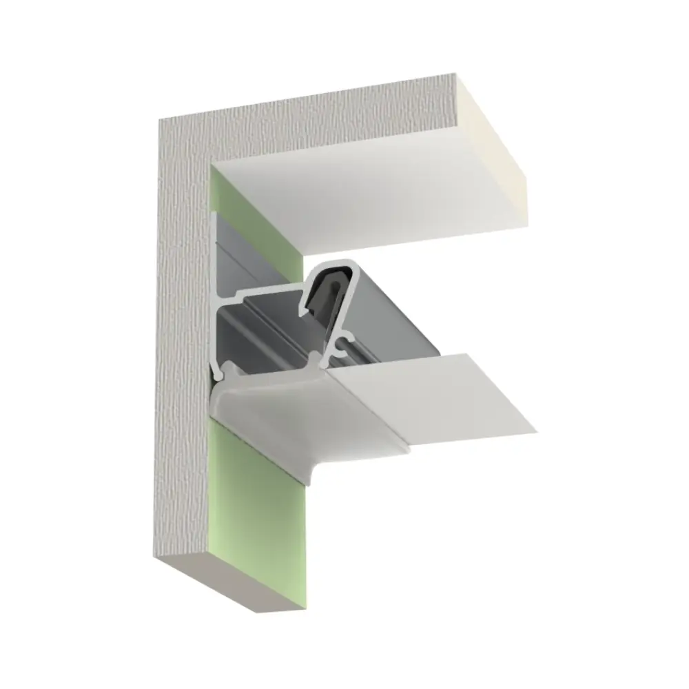 Profil MODEL ST do montażu sufitów napinanych z oświetleniem LED wzdłuż ścian za pomocą maskownicy rozpraszającej o szerokości 20 mm.