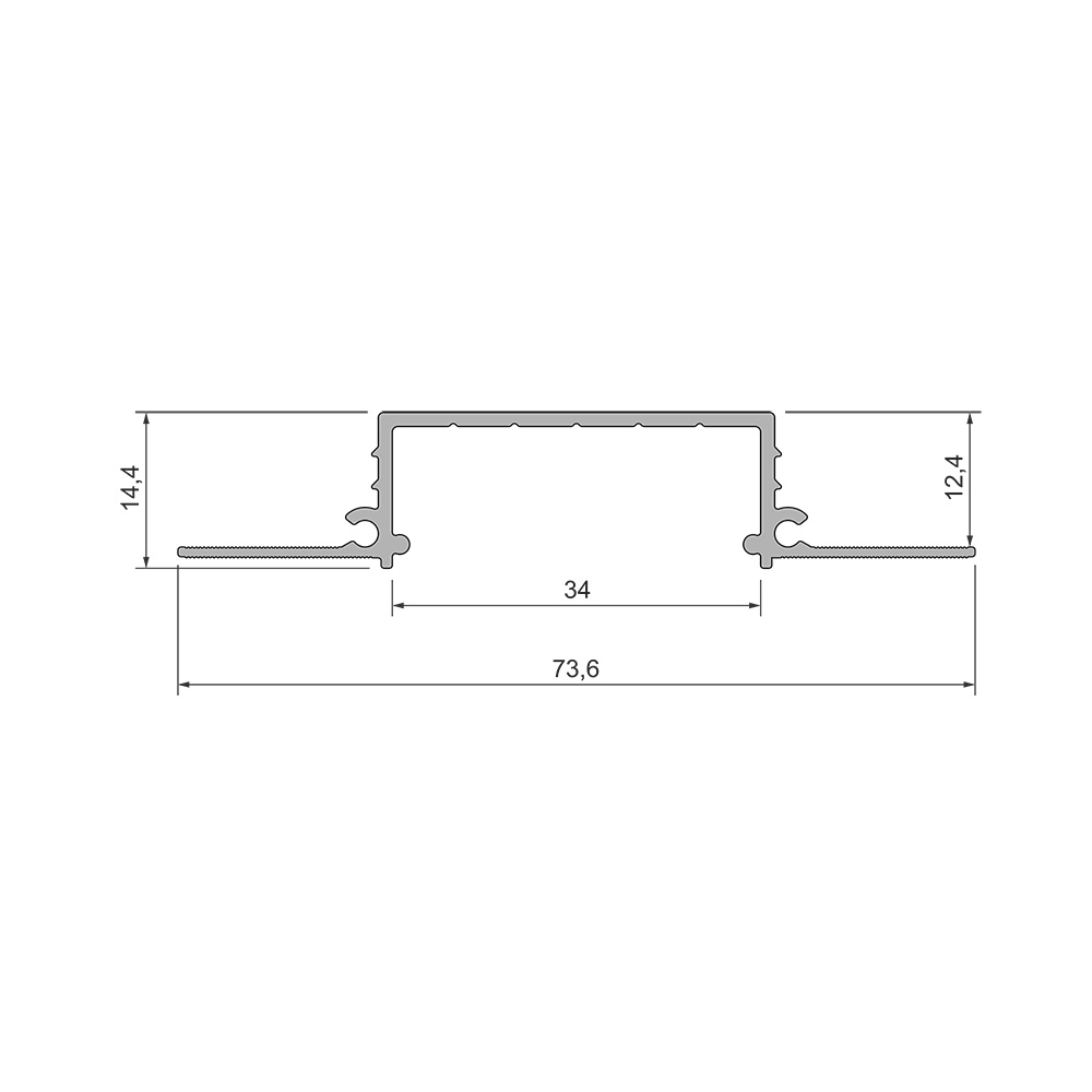 GK LINE IN 30 to szerszy podtynkowy profil LED przeznaczony do zabudowy gipsowo‑kartonowej. Kanał o szerokości 34 mm pozwala zastosować dwie taśmy LED lub jedną mocną taśmę, dzięki czemu uzyskujemy wyrazistą linię świetlną w nowoczesnych wnętrzach. Profil ma niewielką wysokość (14,4 mm) i wąskie krawędzie, co umożliwia niemal niewidoczny montaż. Naturalne wykończenie Mill Finish i aluminiowa konstrukcja (~0,40 kg/mb) gwarantują łatwe malowanie oraz doskonałe odprowadzanie ciepła. Długość jednej sekcji to 2 m; profile pakowane są po 10 m.