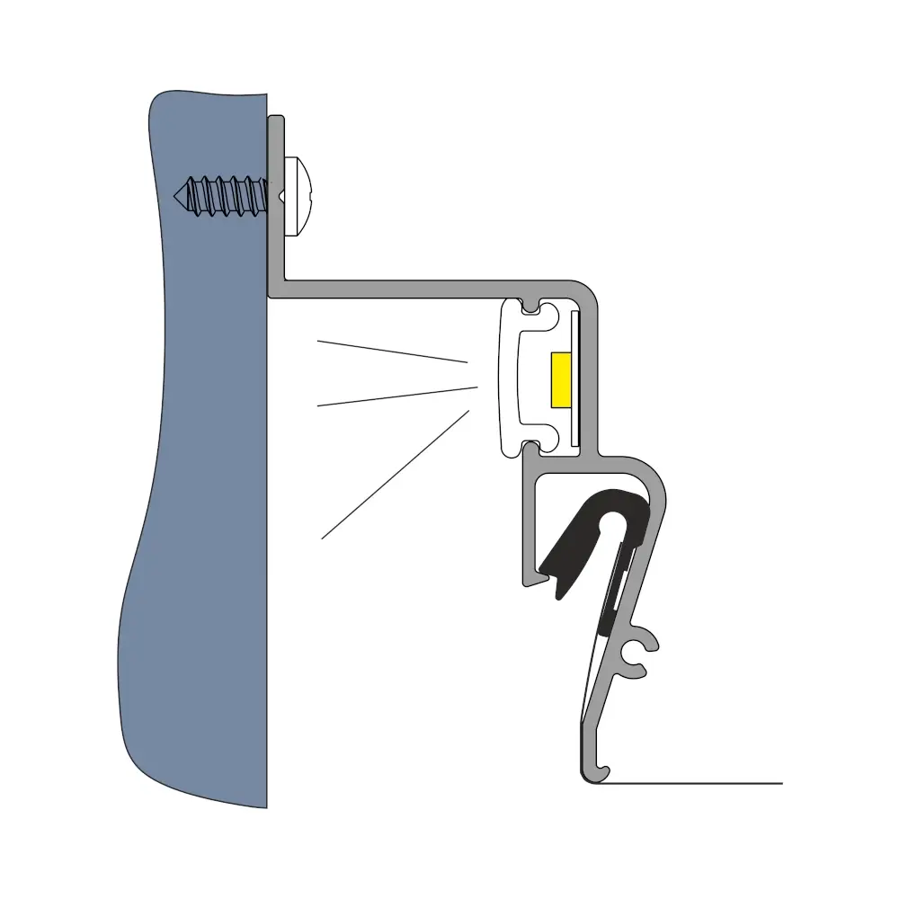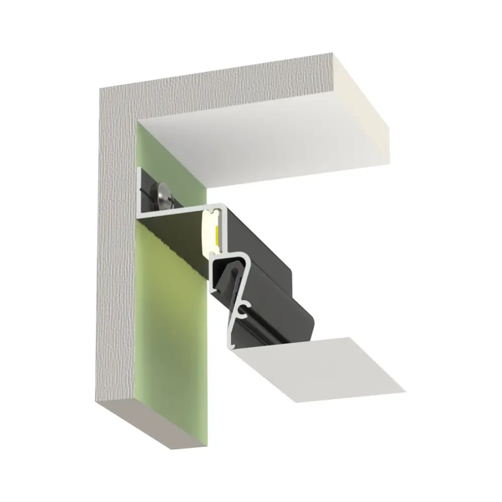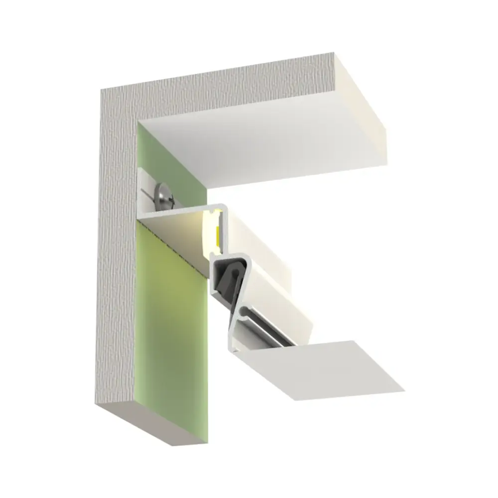 Профиль для монтажа натяжных потолков с теневым примыканием и LED подсветкой с возможностью использования эластичноного рассеивателя. Создает эффект парящего потолка.