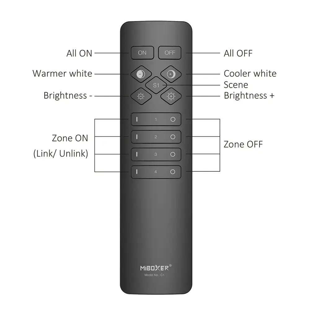 Новая версия пульта MI-LIGHT FUT007 Mono+CCT с обновленным дизайном и раширеным функционалом. Пульт поддерживает 4 зоны индивидуального управления, один пульт может работать с неограниченным количеством приемников в 30 м, может регулировать яркость, цветовую температуру и совместим с серией MiBoxer/Mi-Light 2.4G, как контроллеры и светильники. Позволяет в несколько нажатий создать портативную и удобную сцену освещения.